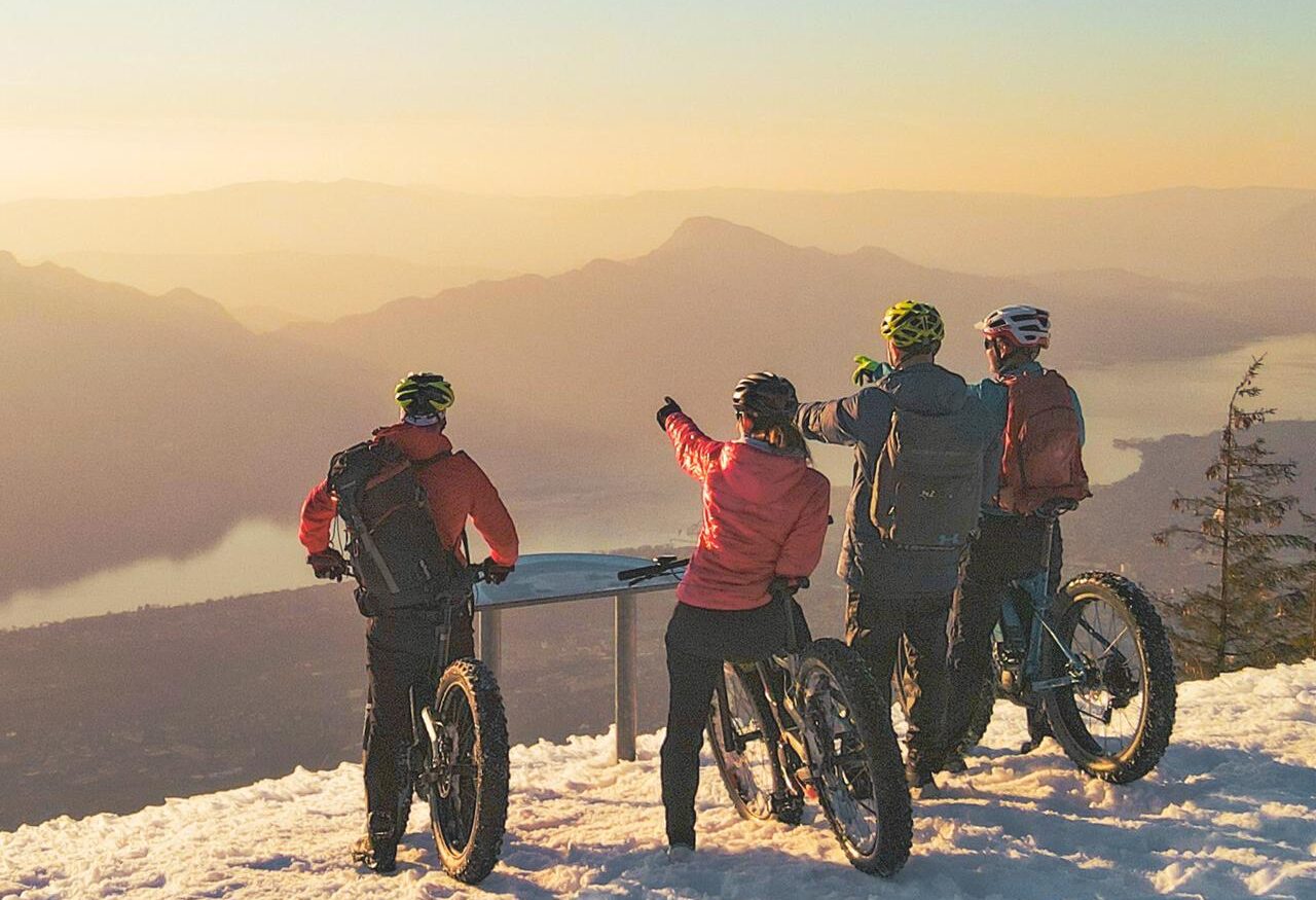 Attendez la fin de la journée pour vivre une expérience unique. Enfourchez nos fatbikes électriques et laissez-vous guider à travers les forêts d’épicéas, les combes et les plateaux dégagés avant d’atteindre la Croix des Bergers. Il s’agit d’un petit sommet où nous partagerons un apéritif bien mérité dans une atmosphère conviviale.